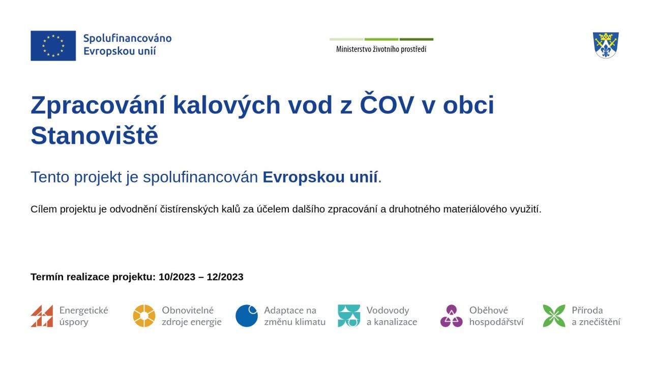 Zpracování kalových vod z ČOV v obci Stanoviště